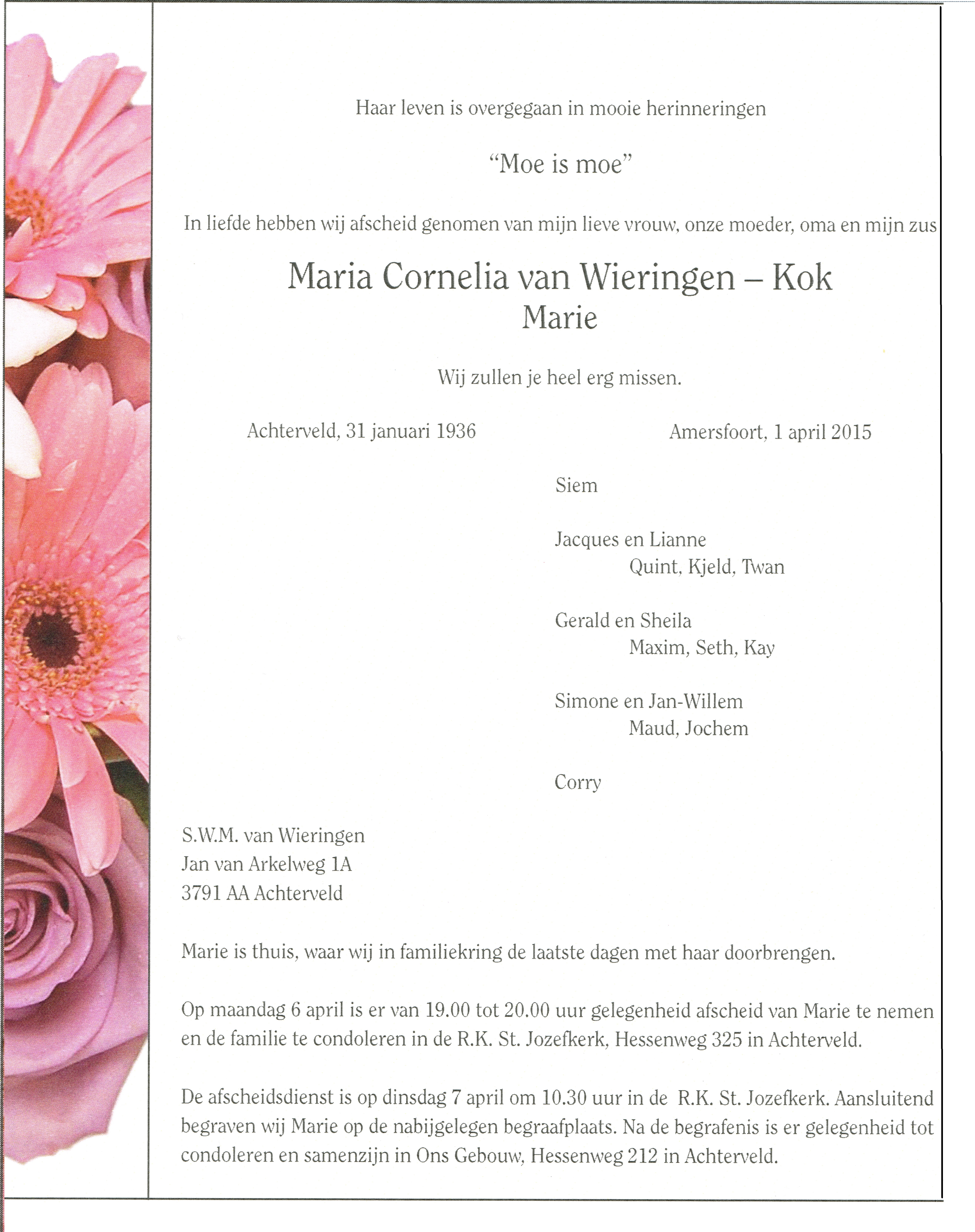 Wij wensen Siem veel sterkte toe met het verlies van Marie.