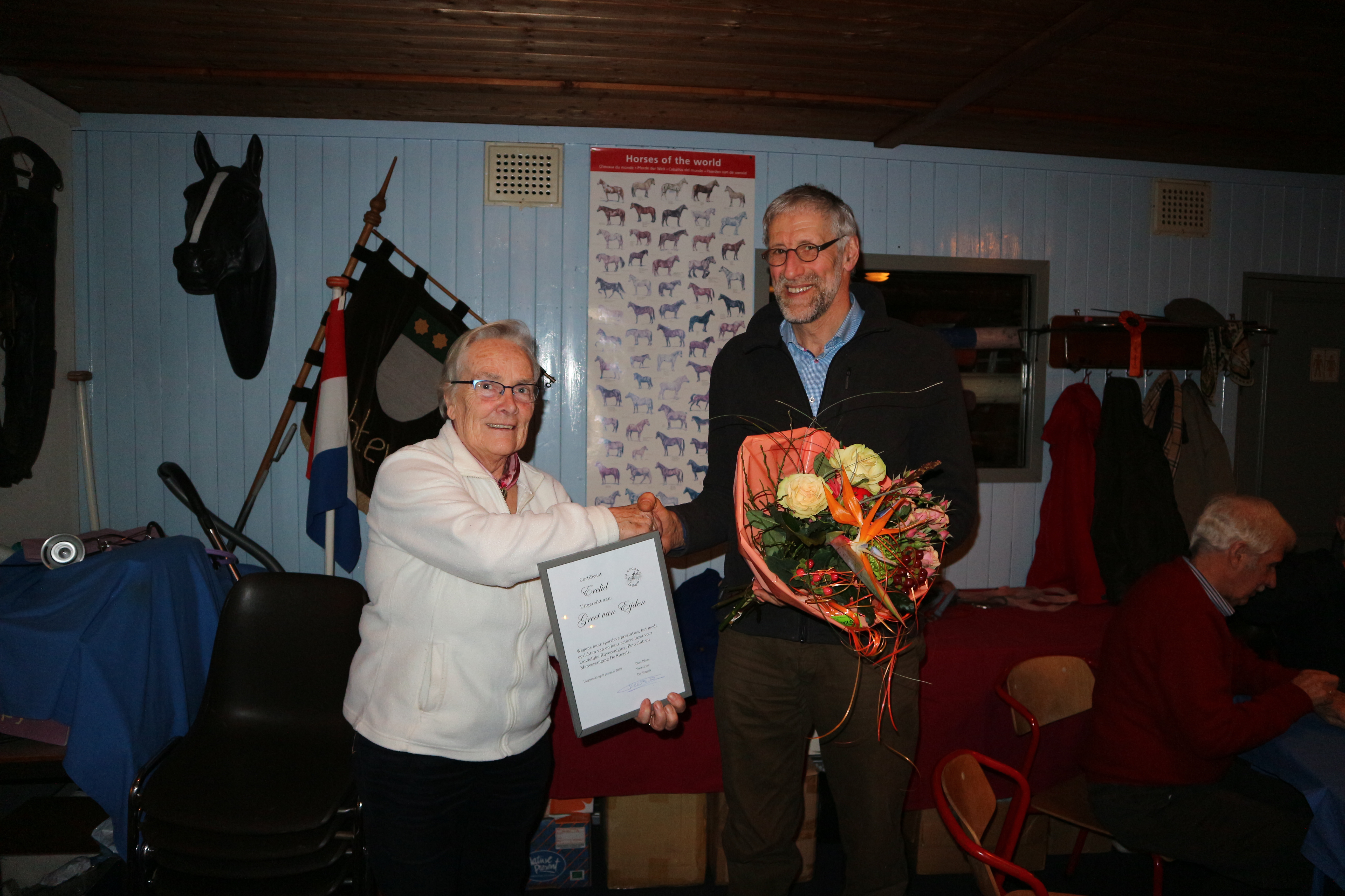 Tijdens de nieuwjaarsreceptie gehouden op 8 januari 2018 is Greet van Eijden-vd Hengel gehuldigd als erelid van De Singels.